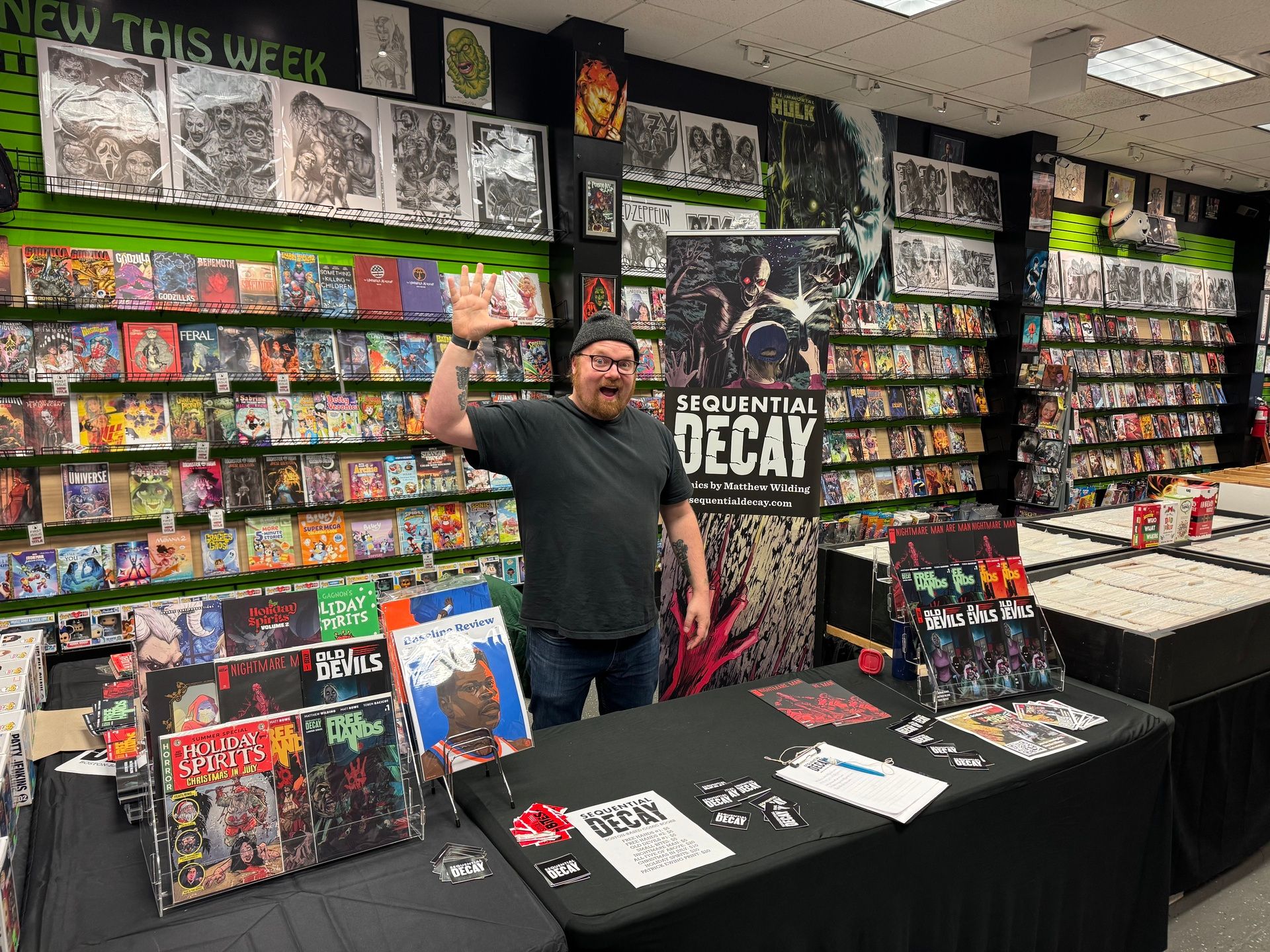 On October 4, I set up shop at Silver Moon Comics in Salem, MA on the recommendation of artist Brandon Gorski. I’d been to the shop a few times previously, and I cannot thank owners Chris and Leslie enough for having me. They were very generous with their space and encouraged the absolute mob of shoppers in their store to check out my comics, which I very much appreciated. Because Salem is such a big Halloween tourist attraction, I got to meet folks from all over—off the top of my head, I chatted with horror enthusiasts and comics fans from Colorado, Florida, New Mexico, New York, California, and Kansas. I sold out of Small Bites almost immediately, and made a whole lot of new Nightmare Man/Old Devils fans.